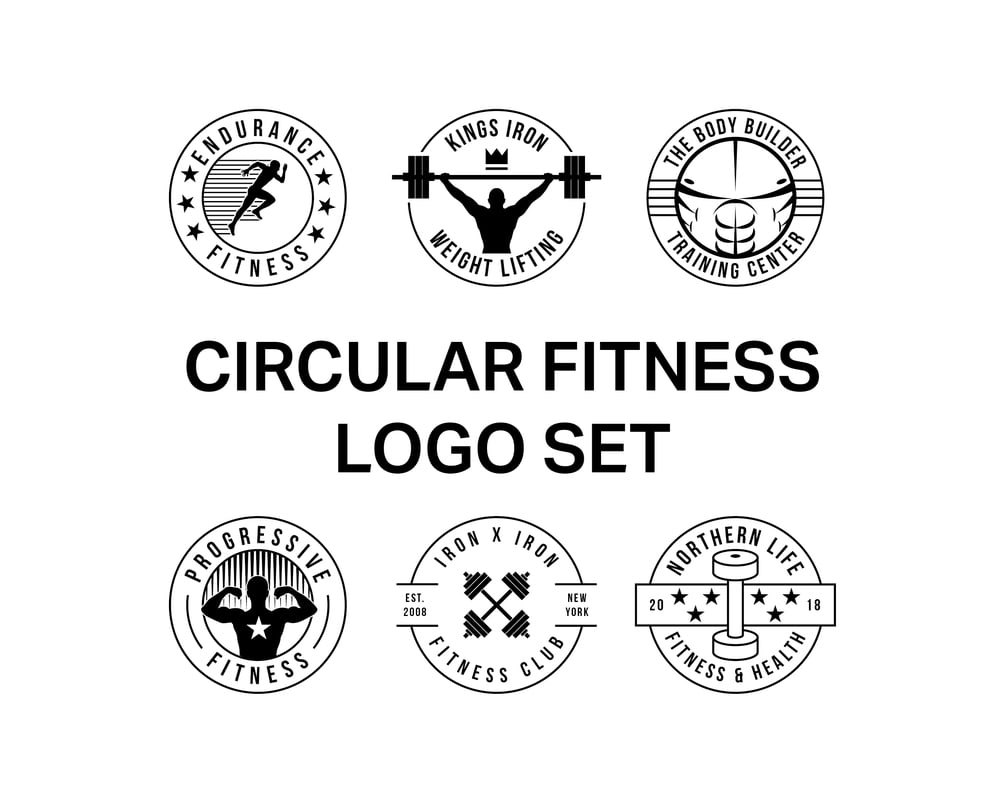 Circular Fitness Logo Set β 6 Customizable Badge-Style Logos (AI, PSD, EPS)
