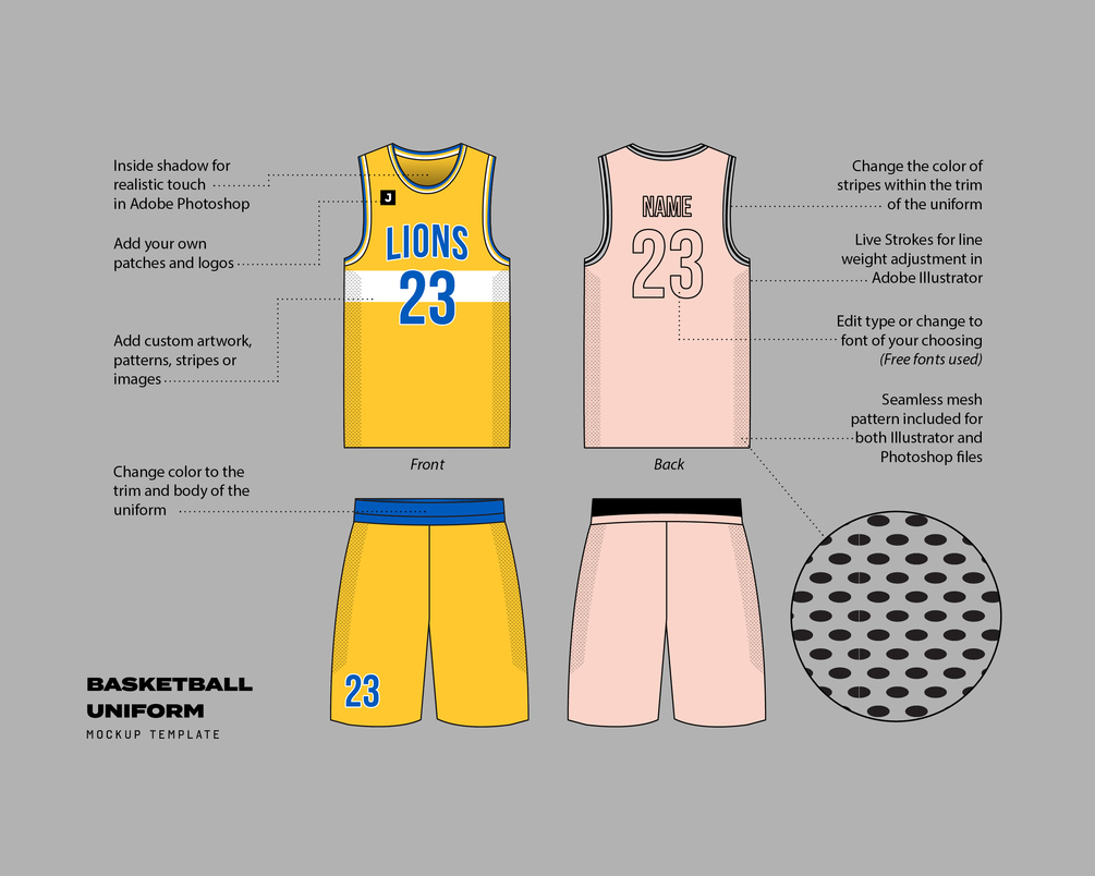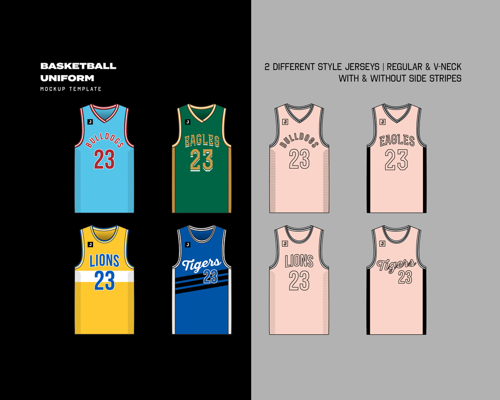 Design your dream basketball uniform effortlessly! This mockup template lets you customize and visualize your uniform concepts in a breeze. Change colors, add patterns, and even adjust the line weight to create a unique look. Compatible with both Photoshop and Illustrator, this versatile template is perfect for experienced designers or those familiar with Photoshop and Illustrator.