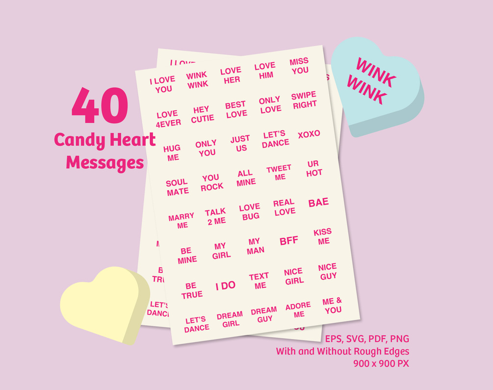 This Valentine's Day, let your creativity flow with my Candy Heart Creator Kit! This delightful kit includes 14 unique heart shapes in 7 sweet colors, along with 40 pre-made messages, perfect for mixing and matching. Use them in your favorite design program like Photoshop or Illustrator to add a charming touch to your Valentine's Day projects.