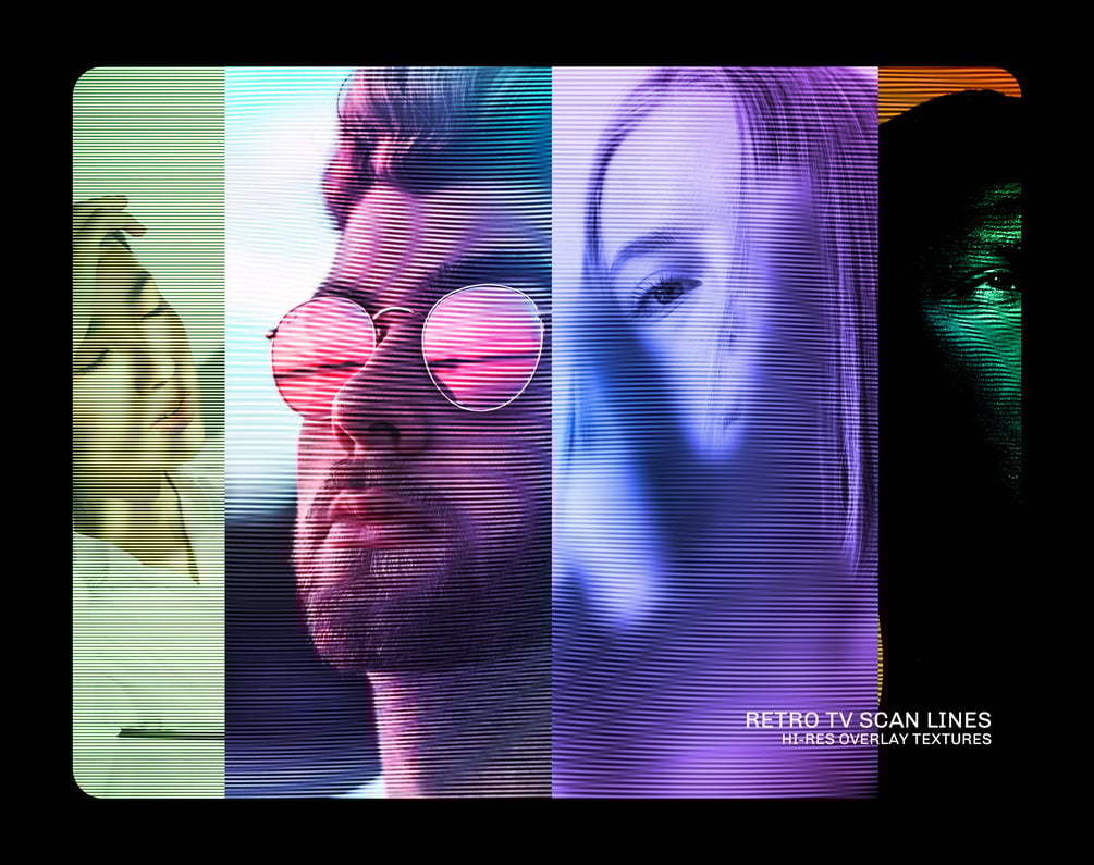 Retro TV Scan Lines is throwback texture that reflects the style in old fashioned tv's from the 90's era. These overlay textures include repetitive lines and unique distortions to create a vintage feel to any design or photograph. It's very easy to use and can be applied in numerous settings for a variety of results.