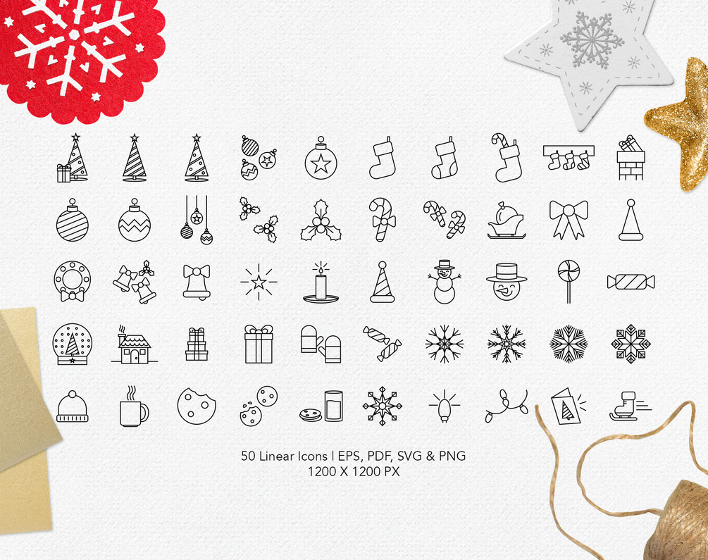 A set of 50 Christmas Icons in various file formats and 2 different styles.