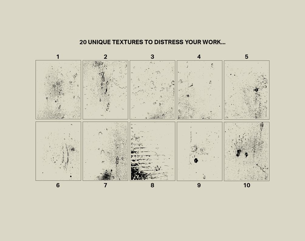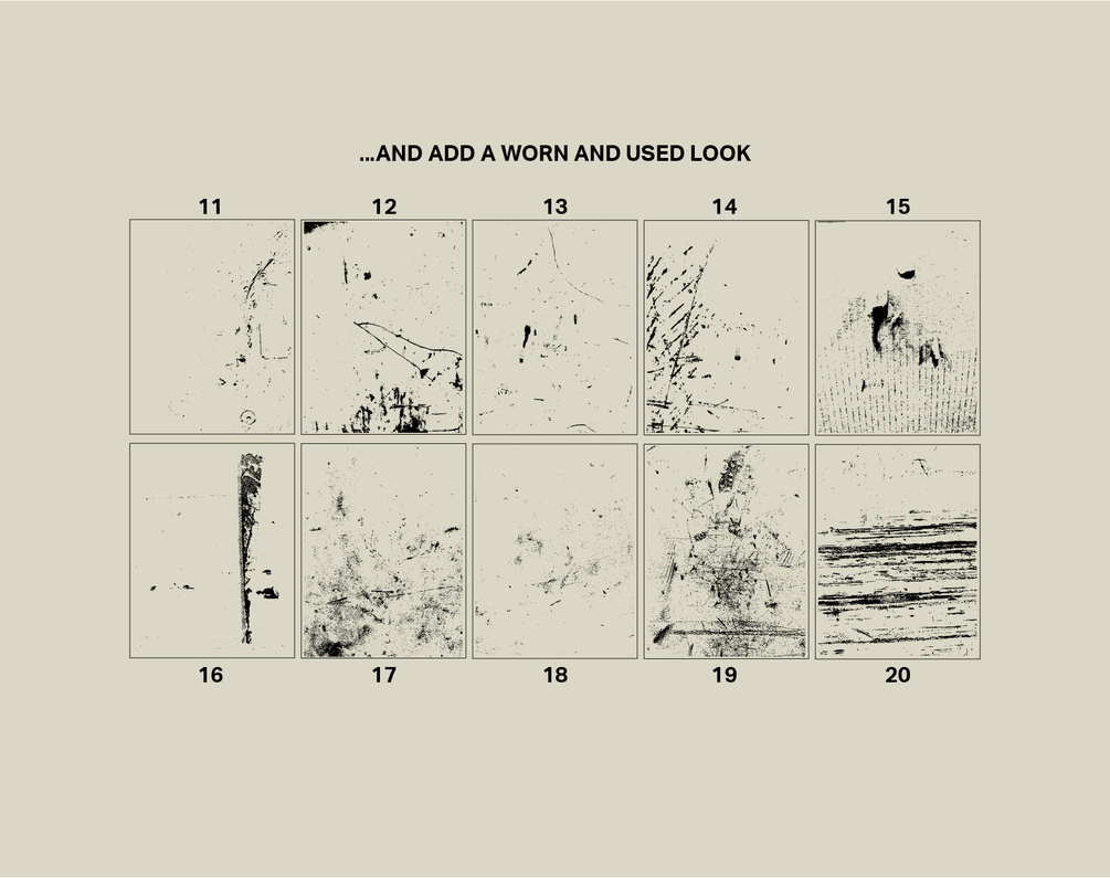 Want to give your designs a dose of gritty awesomeness? This Distressed Texture pack is your secret weapon! We're talking 20 rough, aged, and wonderfully worn textures sourced straight from the industrial jungle. From subtle hints of texture to full-on industrial grunge, this pack has it all. Crafted with love (and a little bit of elbow grease) in Photoshop and Illustrator, these textures will add a touch of raw energy to your next masterpiece.