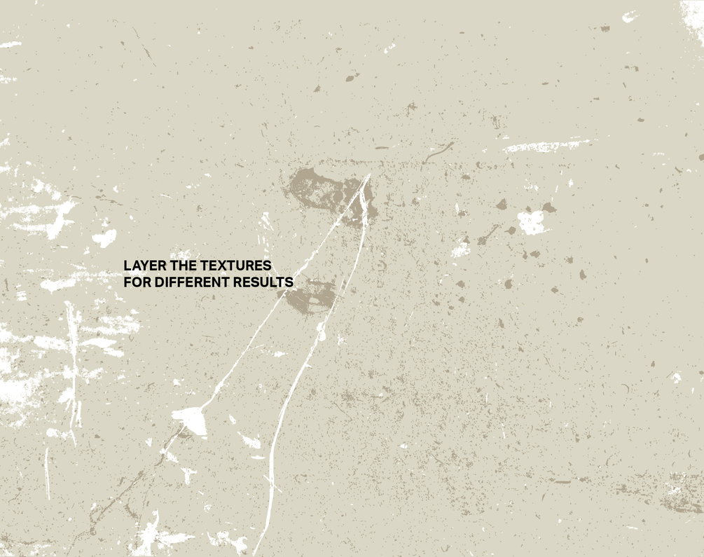 20 distressed textures. Industrial vibes. EPS and PNG formats. Maximum coolness. Crafted in Photoshop and Illustrator. Get your grit on!
