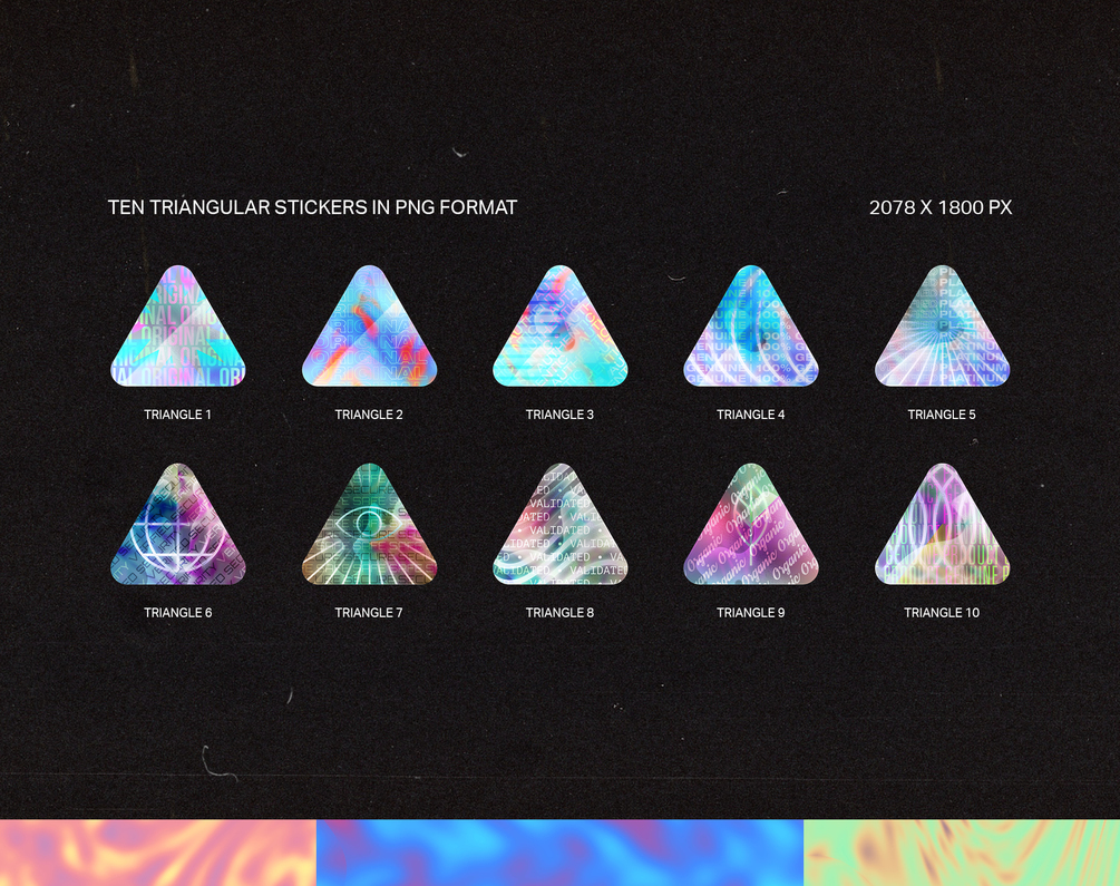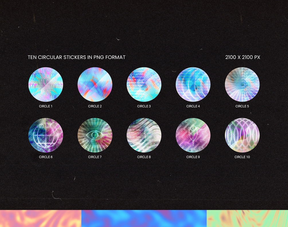 Instantly elevate your designs with realistic, trendy holographic sticker PNGs. Perfect for mockups, social media, and more.